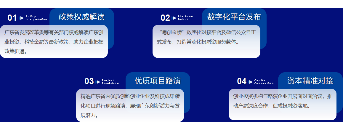 在科技创新驱动高质量发展的时代浪潮中,畅通“科技 - 产业 - 金融”良性循环,是激发区域经济新动能的关键引擎。为全面落实省委省政府关于打造风投创投高地、推动创业投资更好服务实体经济的战略部署,按照《广东省人民政府办公厅关于印发广东省进一步促进创业投资高质量发展行动方案的通知》(粤办函〔2025〕50号)要求,广东省发展和改革委员会联合省有关部门于2025年8月18日正式启动广东省创业投资与创新创业项目对接机制 “粤创金桥” 活动,致力于打造立足广东、辐射湾区、面向全国的常态化、高能级、实效性创投对接平台,推动产投联动、集聚发展,构建风投创投行业发展良好生态。