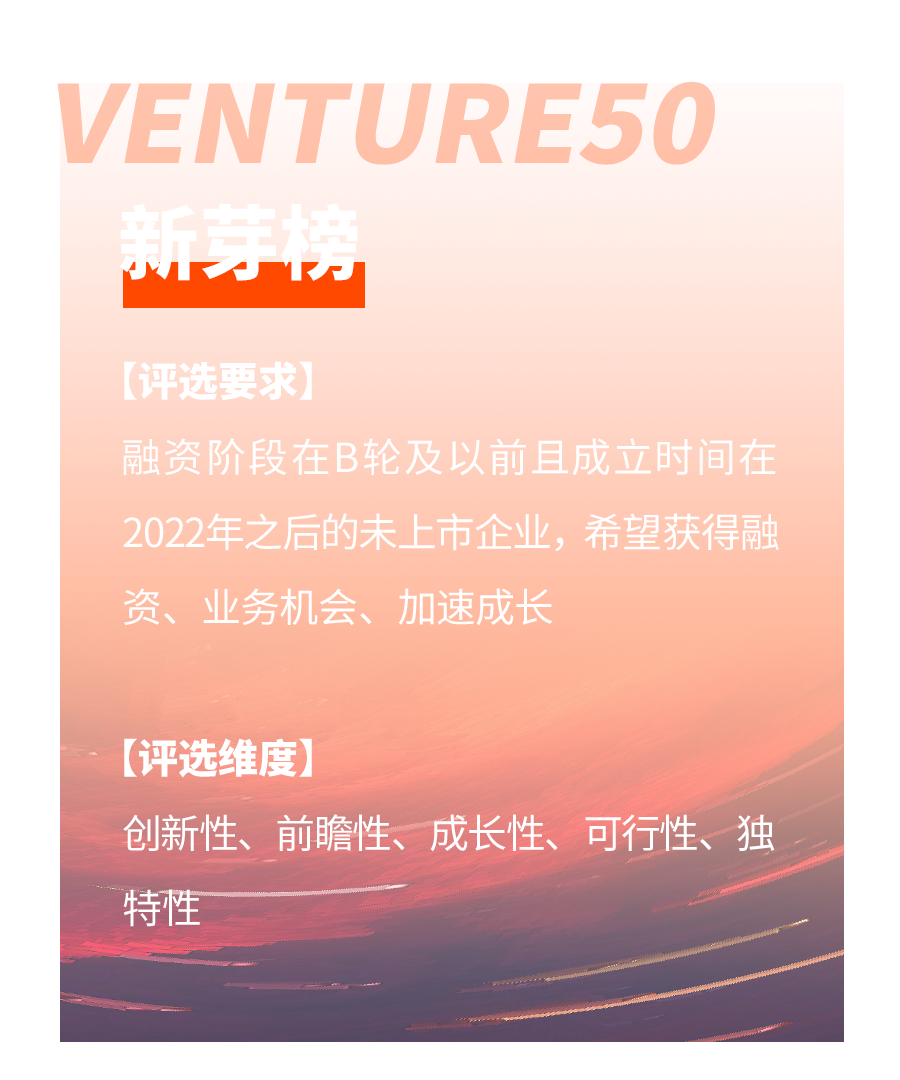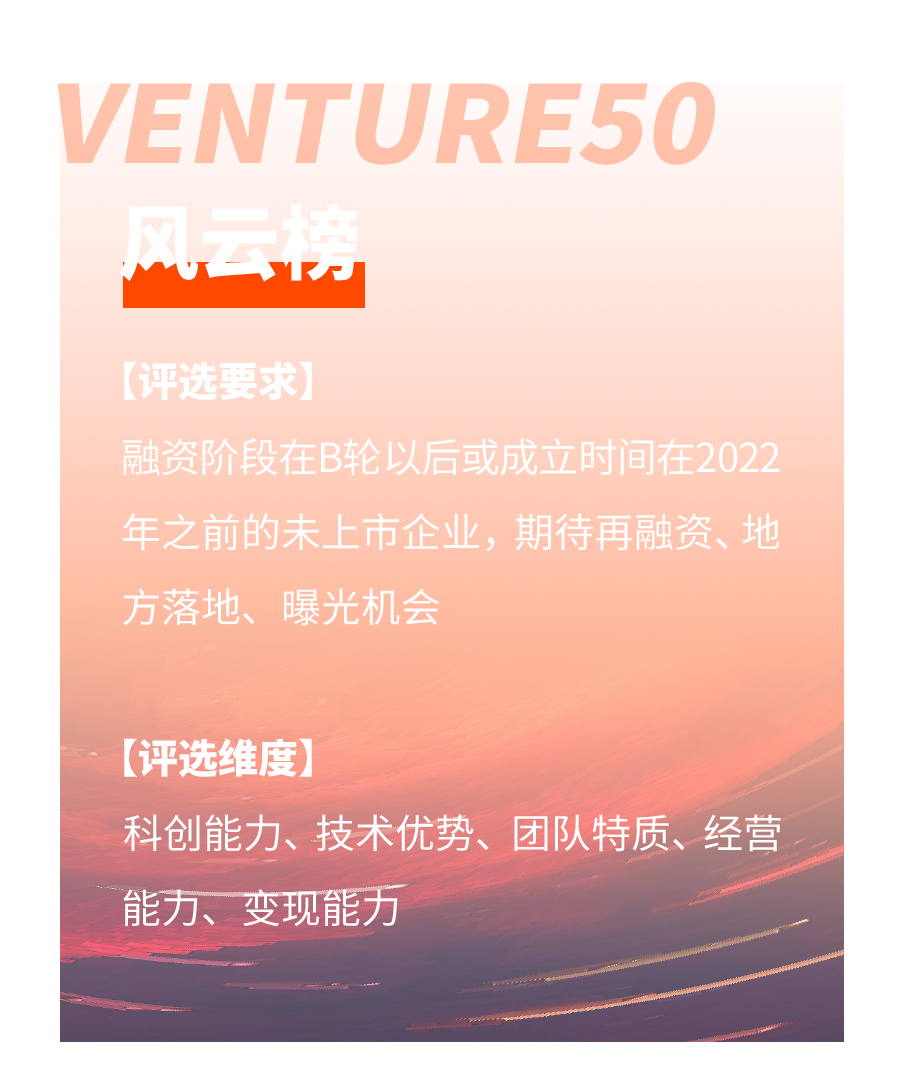 VENTURE50投资价值企业(简称V50)由清科控股(1945.HK)于2006年创立,历经二十载的深耕与发展,现已成为中国高成长企业投资风向标。VENTURE50紧跟科创时代浪潮,以专业投资视角与多维价值评估体系,见证众多科技创新企业实现价值跃迁。